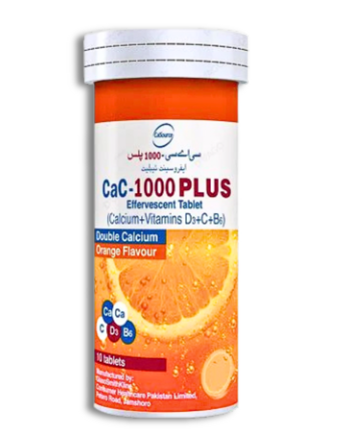 CaC-1000 Plus (Orange) is a calcium and vitamin D supplement that helps maintain strong bones, healthy teeth, and muscle strength. It provides a delicious orange-flavored effervescent formula that dissolves quickly in water for faster absorption. Enriched with Calcium, Vitamin C, Vitamin D, and Vitamin B6, it supports daily nutritional needs and helps prevent calcium deficiency, osteoporosis, and fatigue.